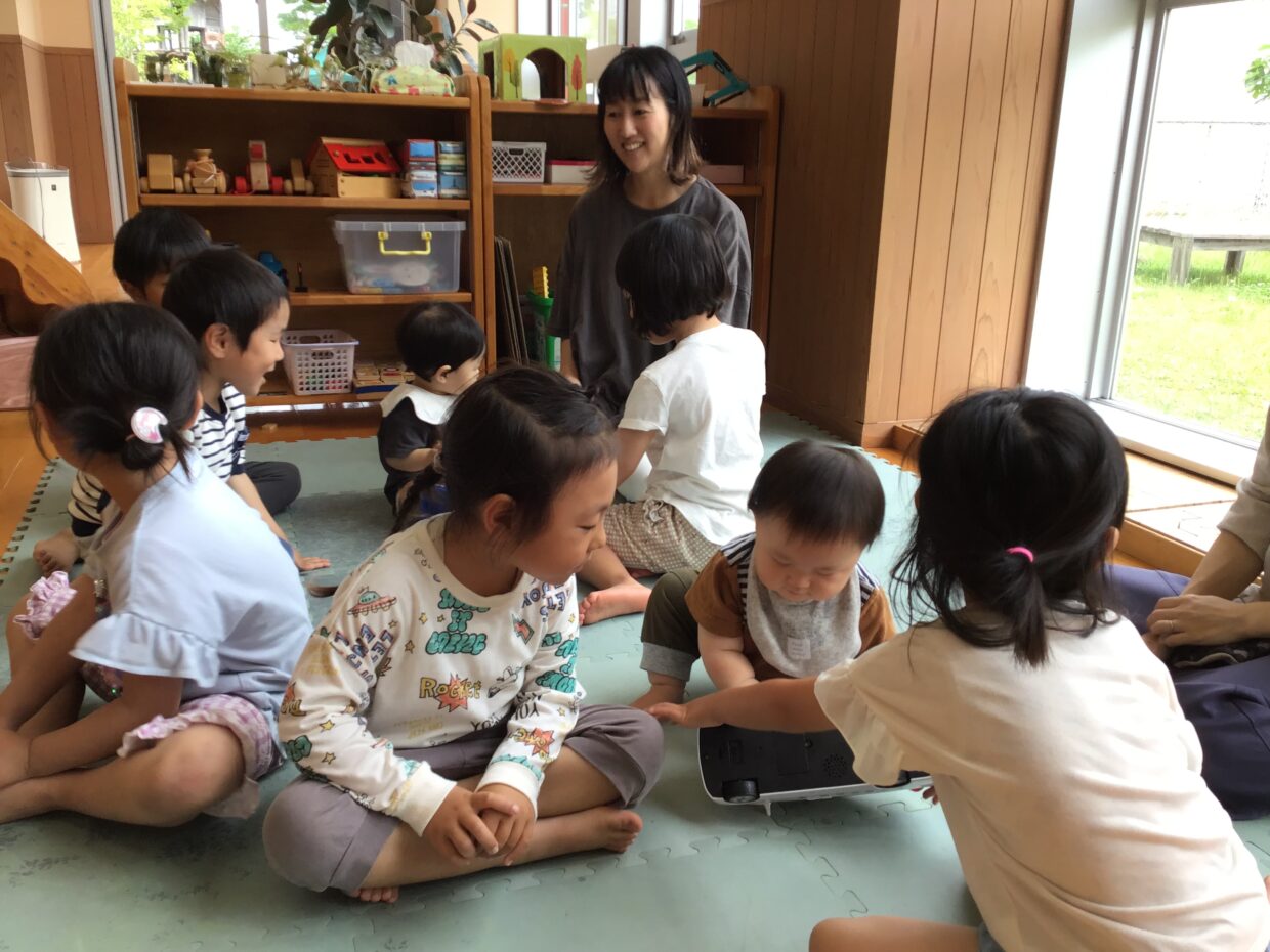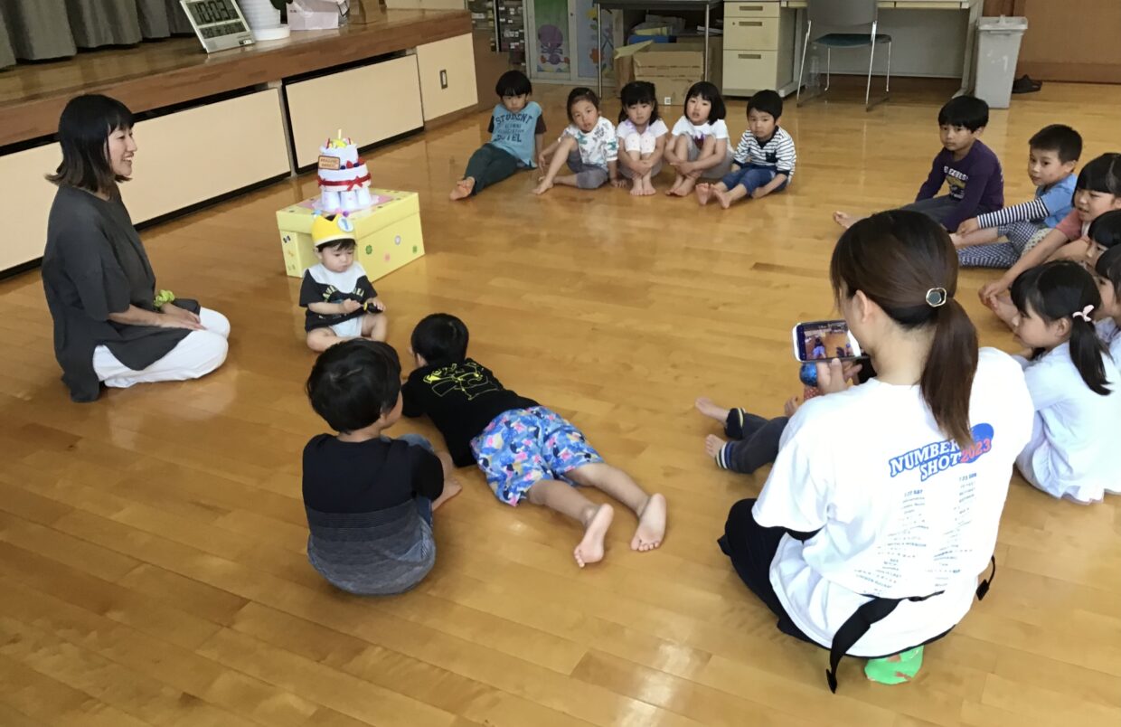 5月生まれの誕生会をしました。こども園のお友だちが歌を歌ってお祝いしてくれましたよ。今日、お祝いしてもらったお友だちは一歳になりました。おめでとう!