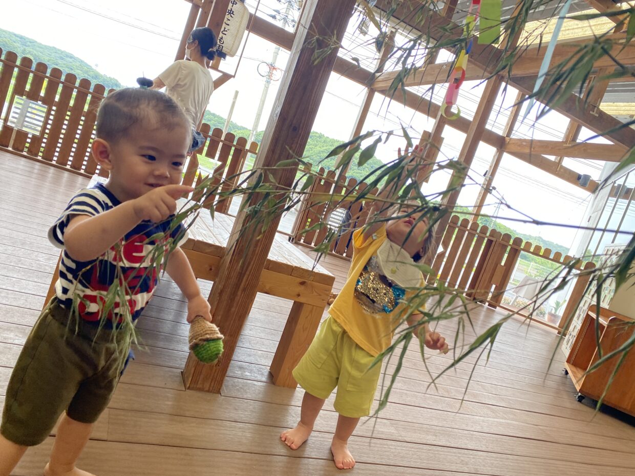 笹の葉に興味津々!