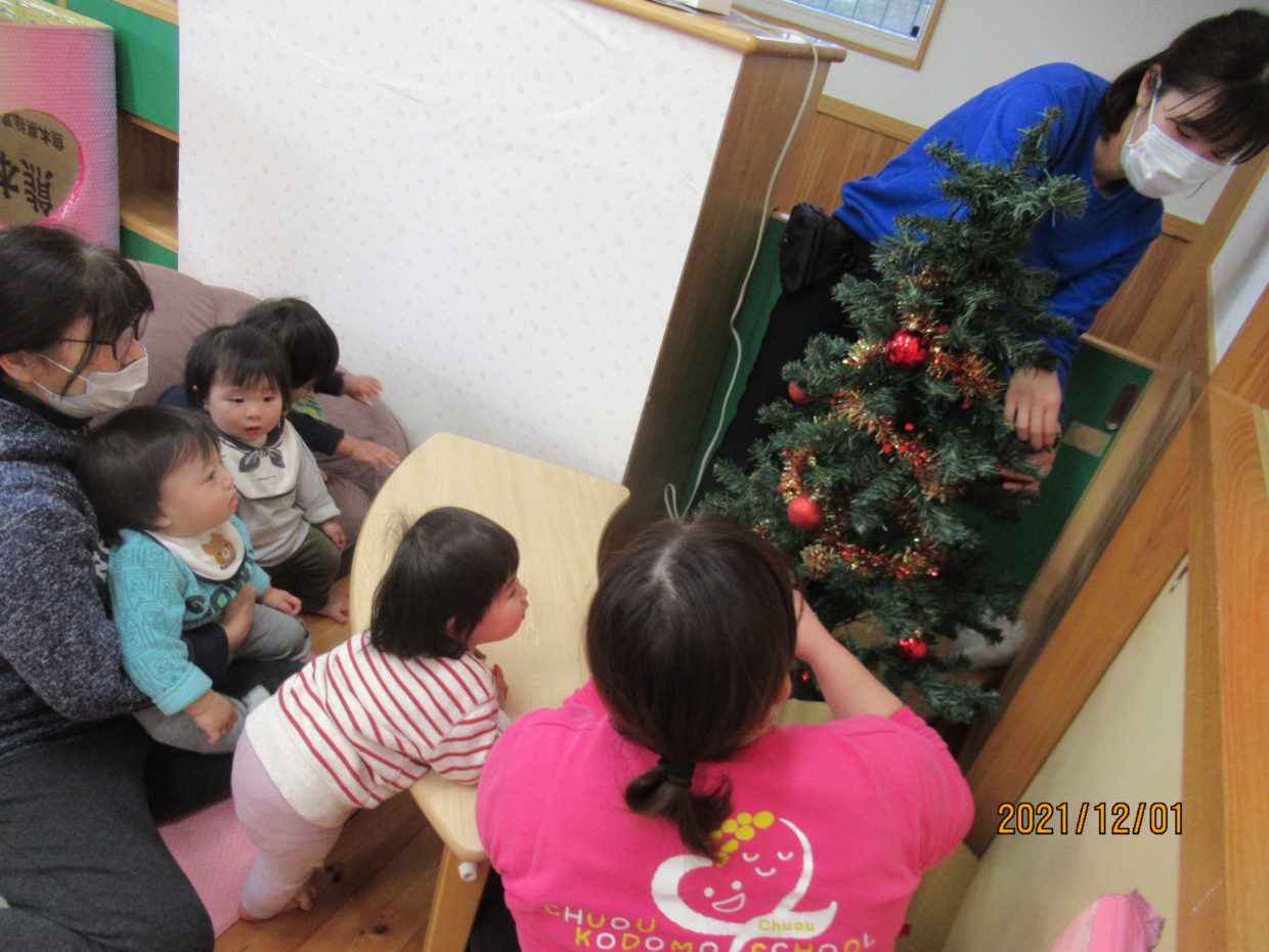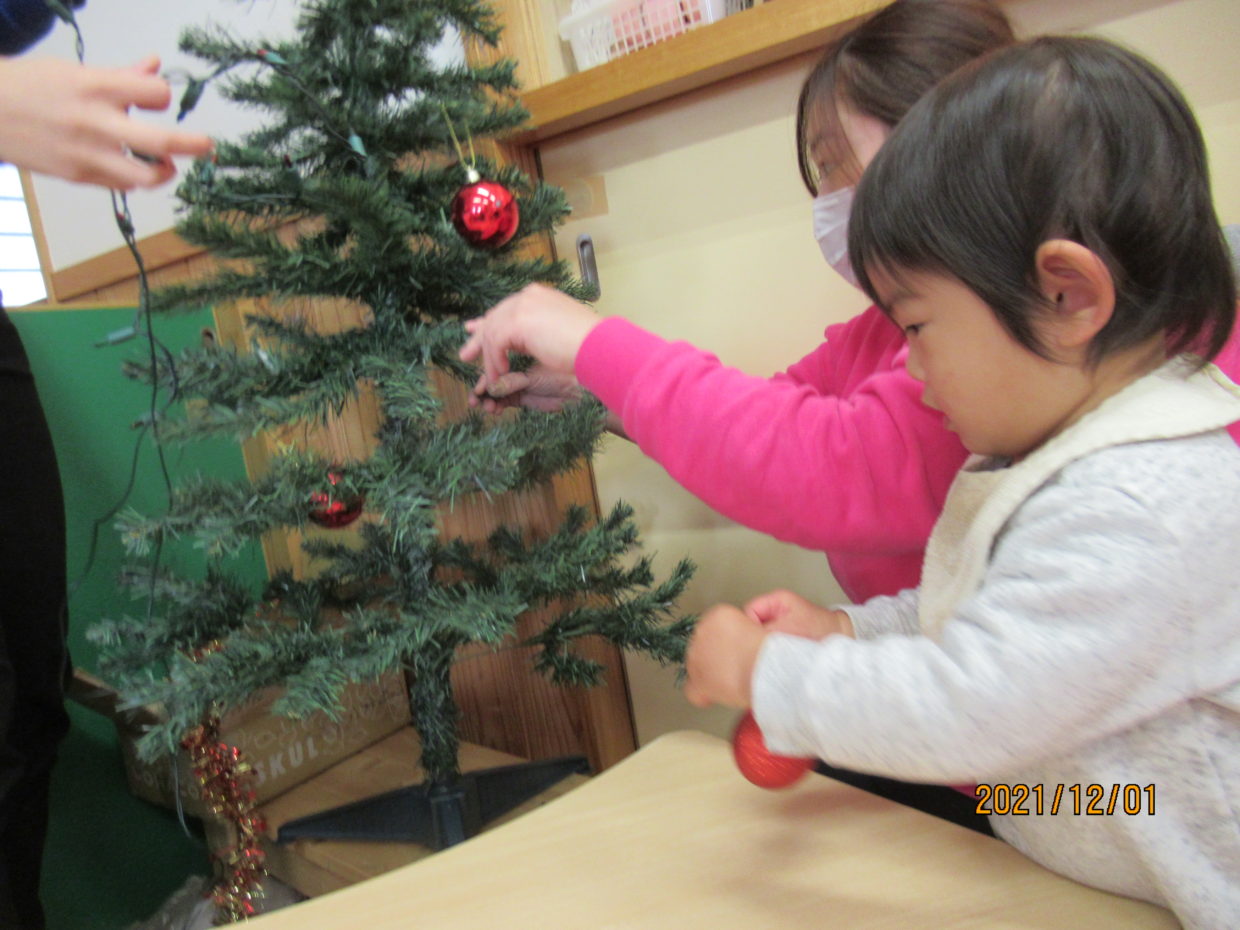 ツリーをじーっと見つめたり、飾りつけをしてくれる友だちもいて、興味津々の様子でした。