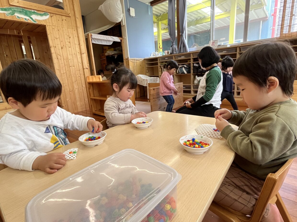 りす・らっこ組から少しお兄さん、お姉さん組のうさぎ・こあら組になり早くも4日が経ちました☆ 新しい環境や先生にも段々と慣れてきて、室内では好きな遊びを見つけて集中して取り組む姿が見られたり、ロフトに挑戦する姿も見られます! 園庭では、乗り物に乗りお兄さんに引っ張ってもらったり、園庭内を保育者と一緒に探索する姿が見られましたよ♪