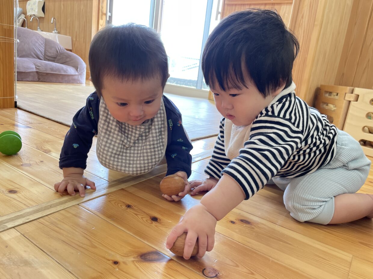 また、沐浴たまごが人気で、回して見せると不思議そうに見つめたり、転がっていくのを追いかける姿に癒されます♡