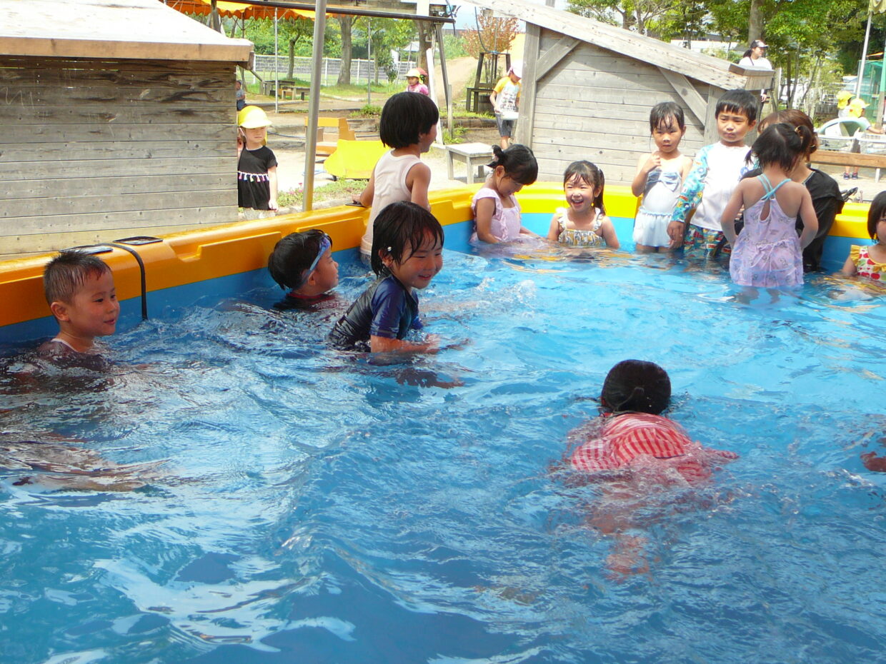 嬉しそうに言っていました。プールの中ではみんなで電車になって歩いたり、肩まで