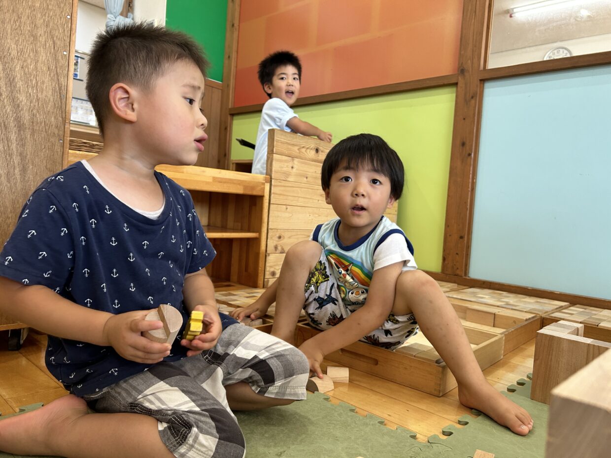 英語あそびの後は室内で積み木やラキューなど涼しい場所で遊びました。