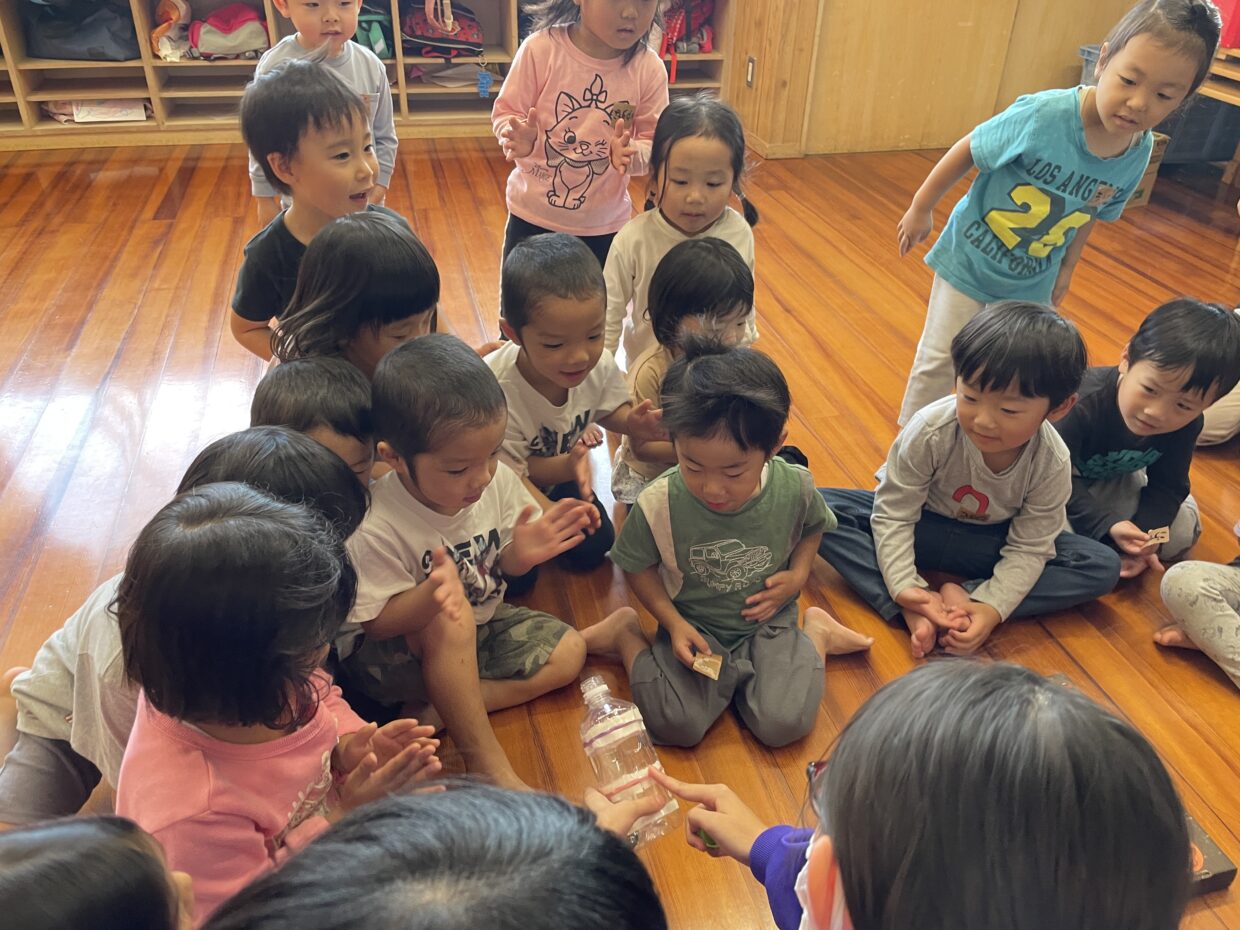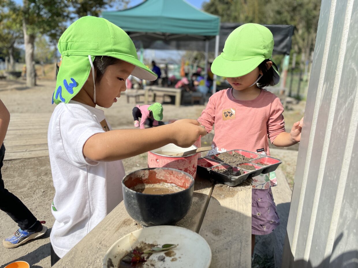 また、落ち葉やバッタなど、身近な自然に触れて遊んだり、「これは何かな?」と気になるものを聞いている子どももいましたよ。3日間一緒に遊んでもらったり、プレゼントを貰ったりと、嬉しそうな様子の子どもたちです♡大切に遊んでいきたいと思います!