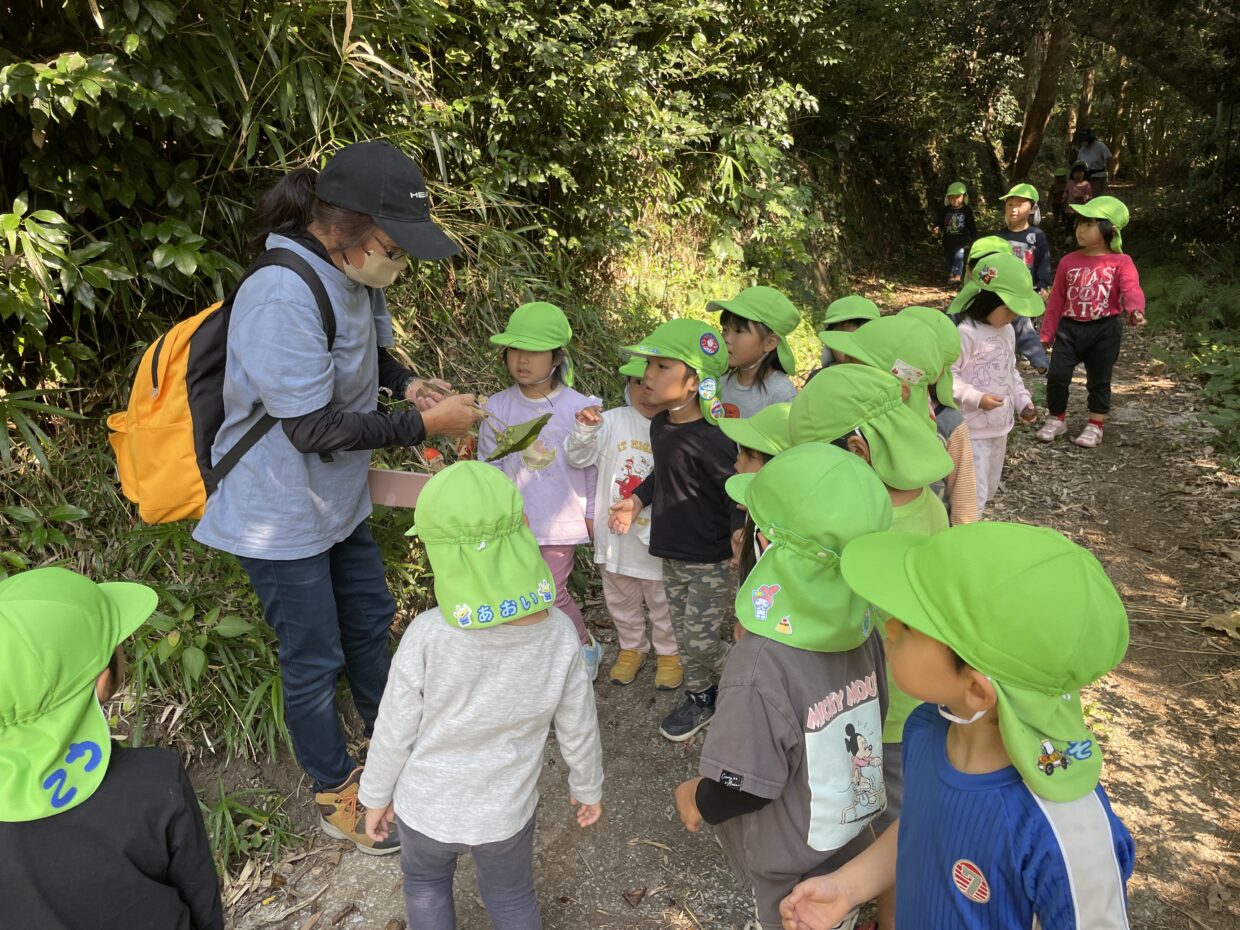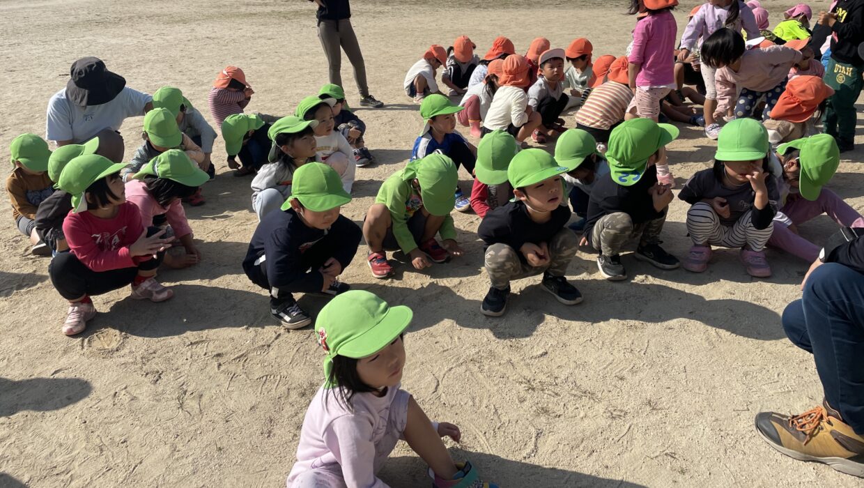 今日は、津波の避難訓練がありました。非常ベルの音と保育者の声掛けで、地震である事を知り、机の下等に入って頭を守る様子が見られました。ベルの音が止まると、園庭へ行き、保育者の話を聞いてから、みんなで宗近中学校まで避難しました。一生懸命走って避難する様子が見られましたよ。帰りは、別のルートを通って園まで帰りました。栗やススキなどの秋の自然物に触れて喜んでいる様子が見られました!