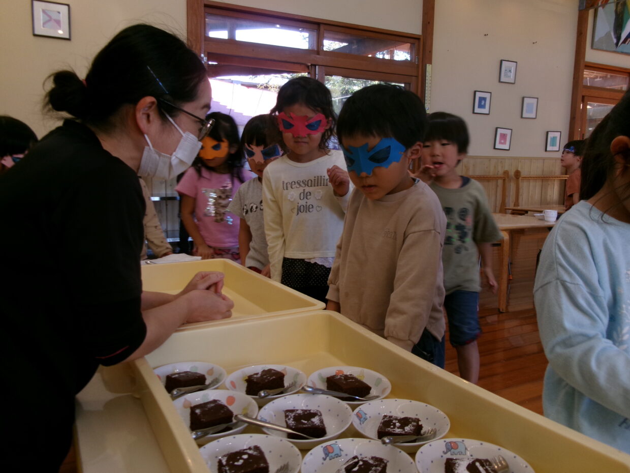 給食の先生に「トリックオアトリート」と言いおやつをもらい嬉しそうでした。