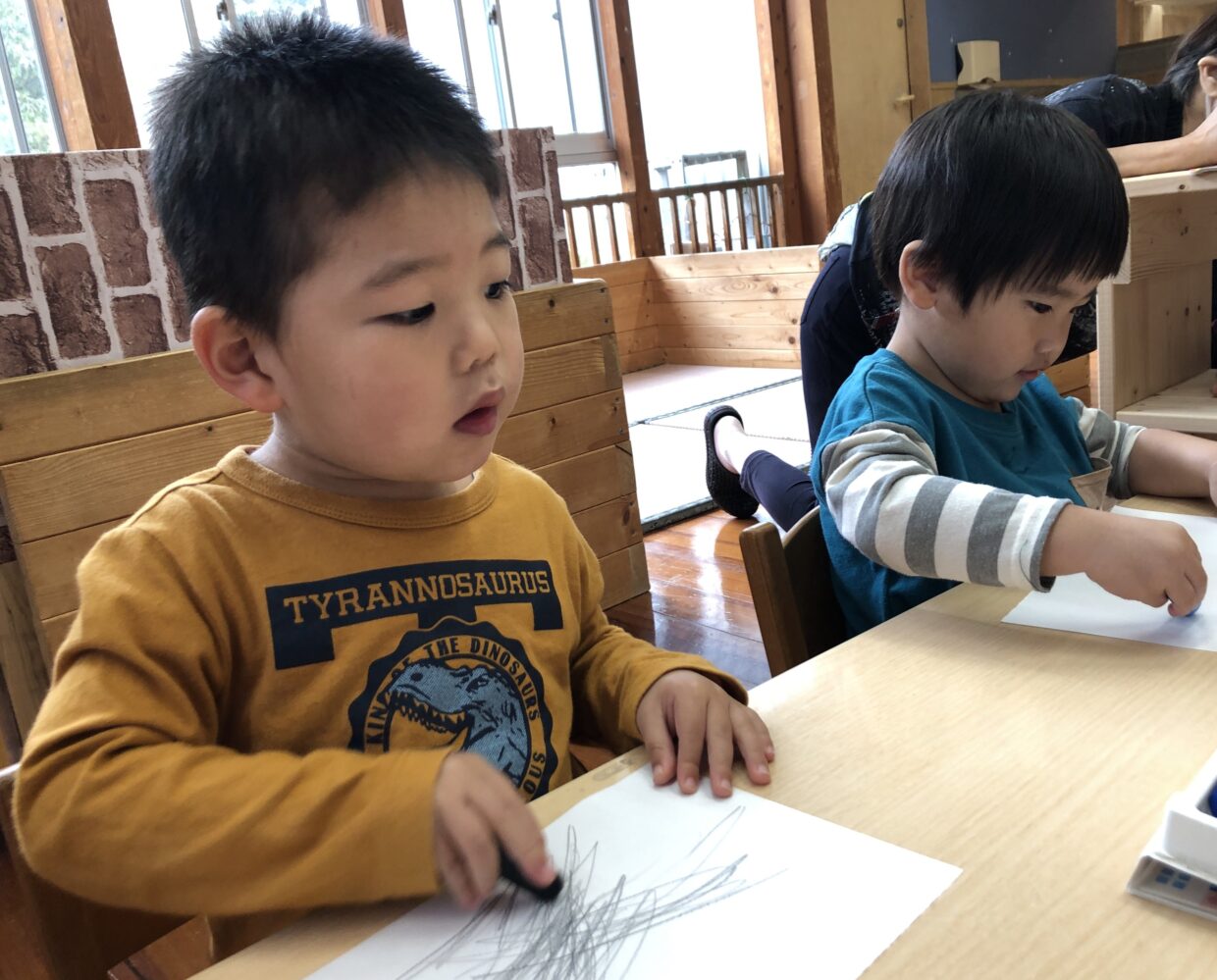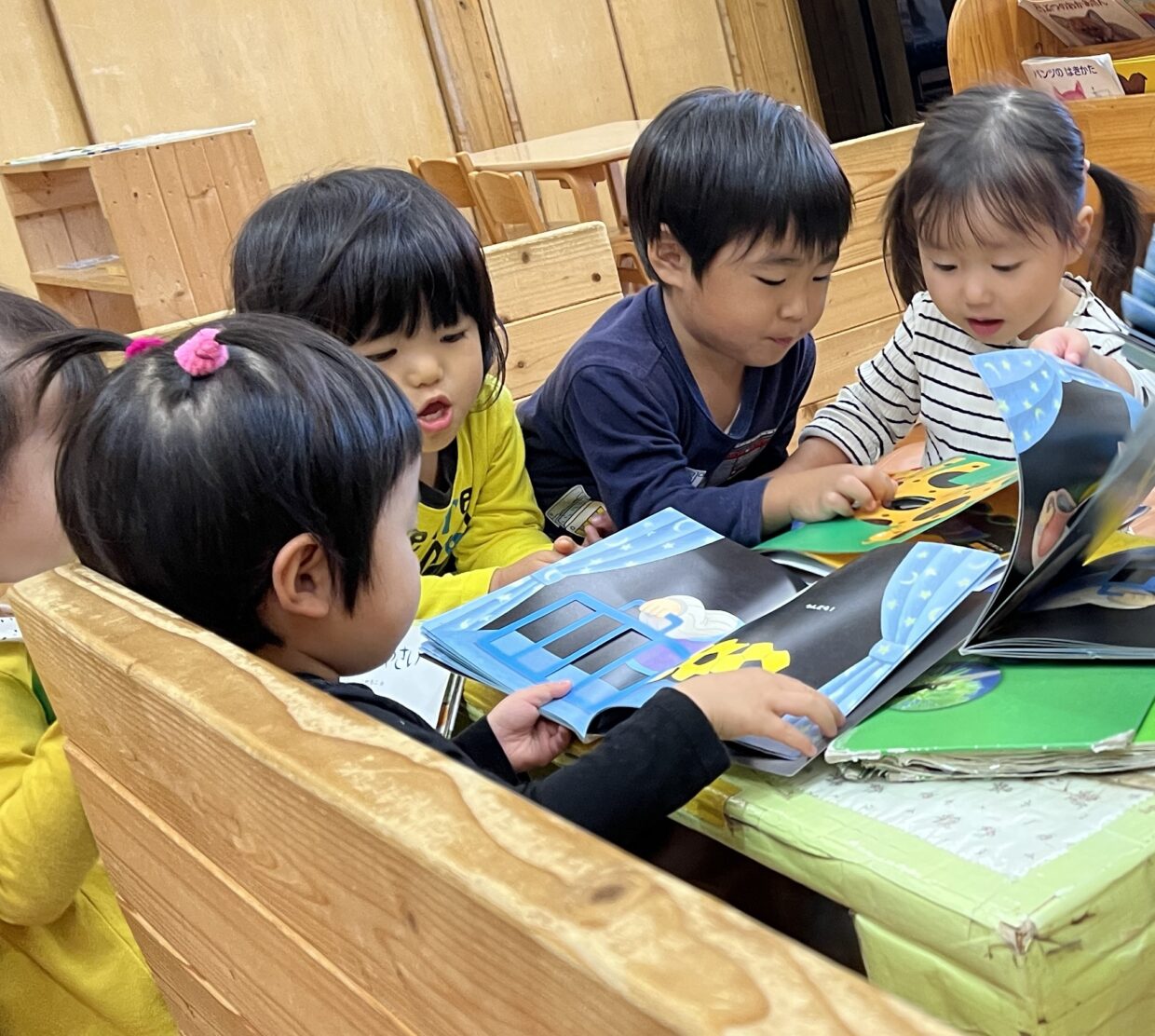 うさぎ組では、自分の好きな色のクーピーを使ってお絵描きをしたり、保育者が絵本を読むと夢中になって見ていました。