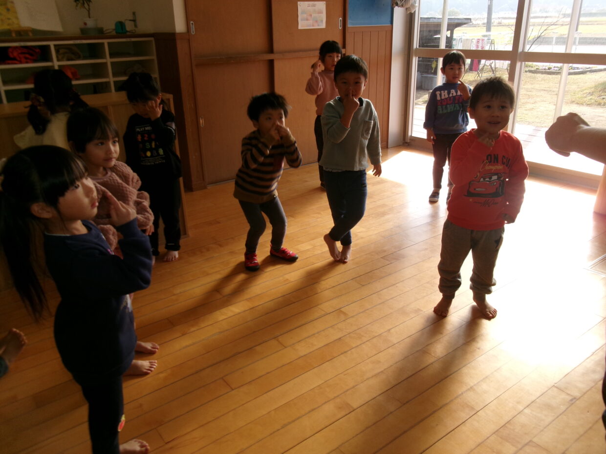 踊る歌、体の部位を知らせる歌などいろんな歌に合わせて体を動かしました。