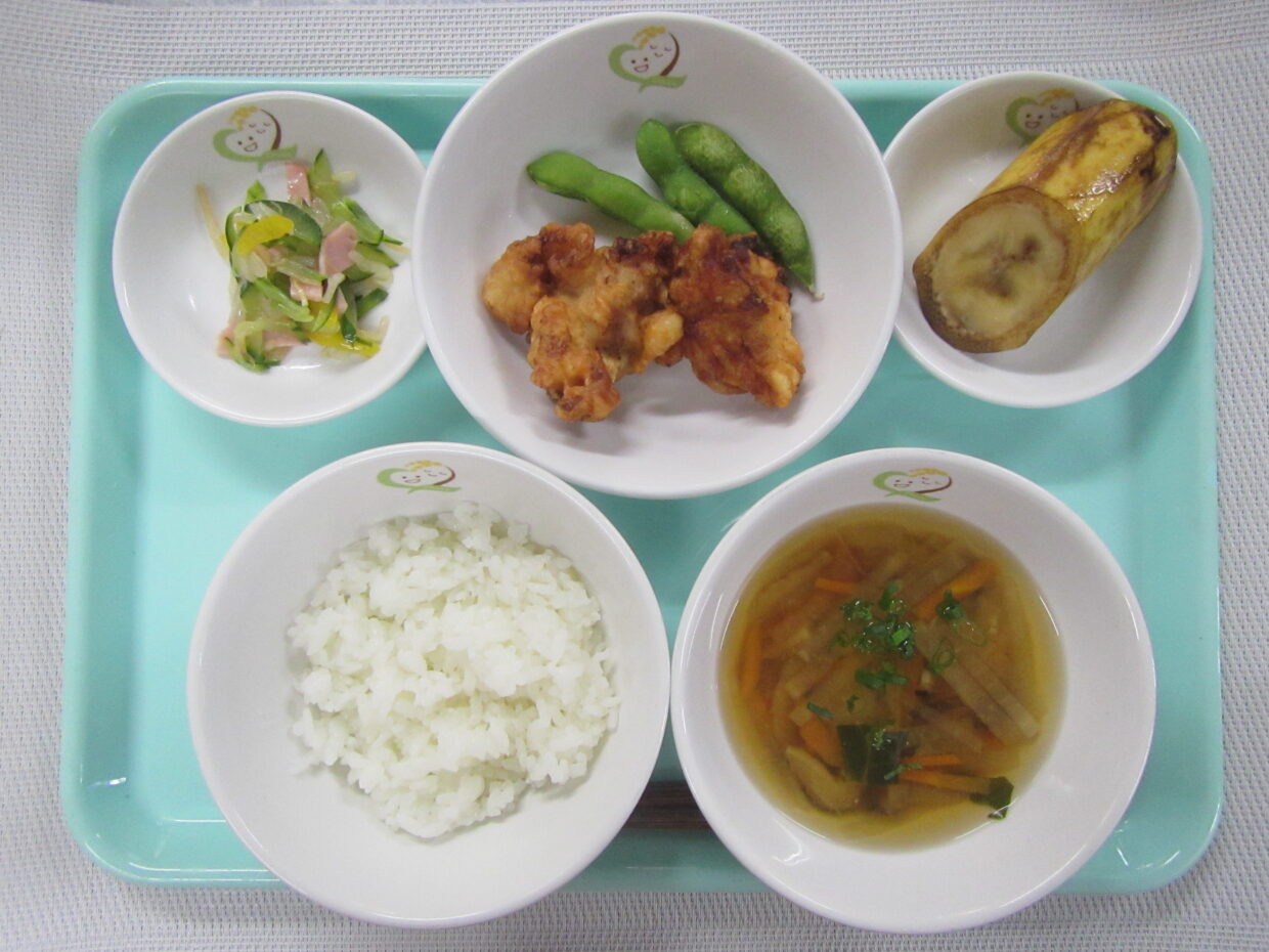 大分県杵築市大字南杵築972 0978-62-3366 お問い合わせ メニュー トップページ 保育について 教育・保育内容 食事 年間行事 園での生活 園について 園の特色 施設の紹介 先生紹介 園の概要 アクセス 中央福祉会について 入園案内 子育て支援 お知らせ 園日記 おたより 今日のメニュー お問い合わせ 今日のメニュー 2025.05.23 令和7年5月23日 とり天 枝豆 もやしの中華和え 大根の味噌汁 バナナ (おやつ) 牛乳 大学トースト 前のページ 次のページ 一覧にもどる